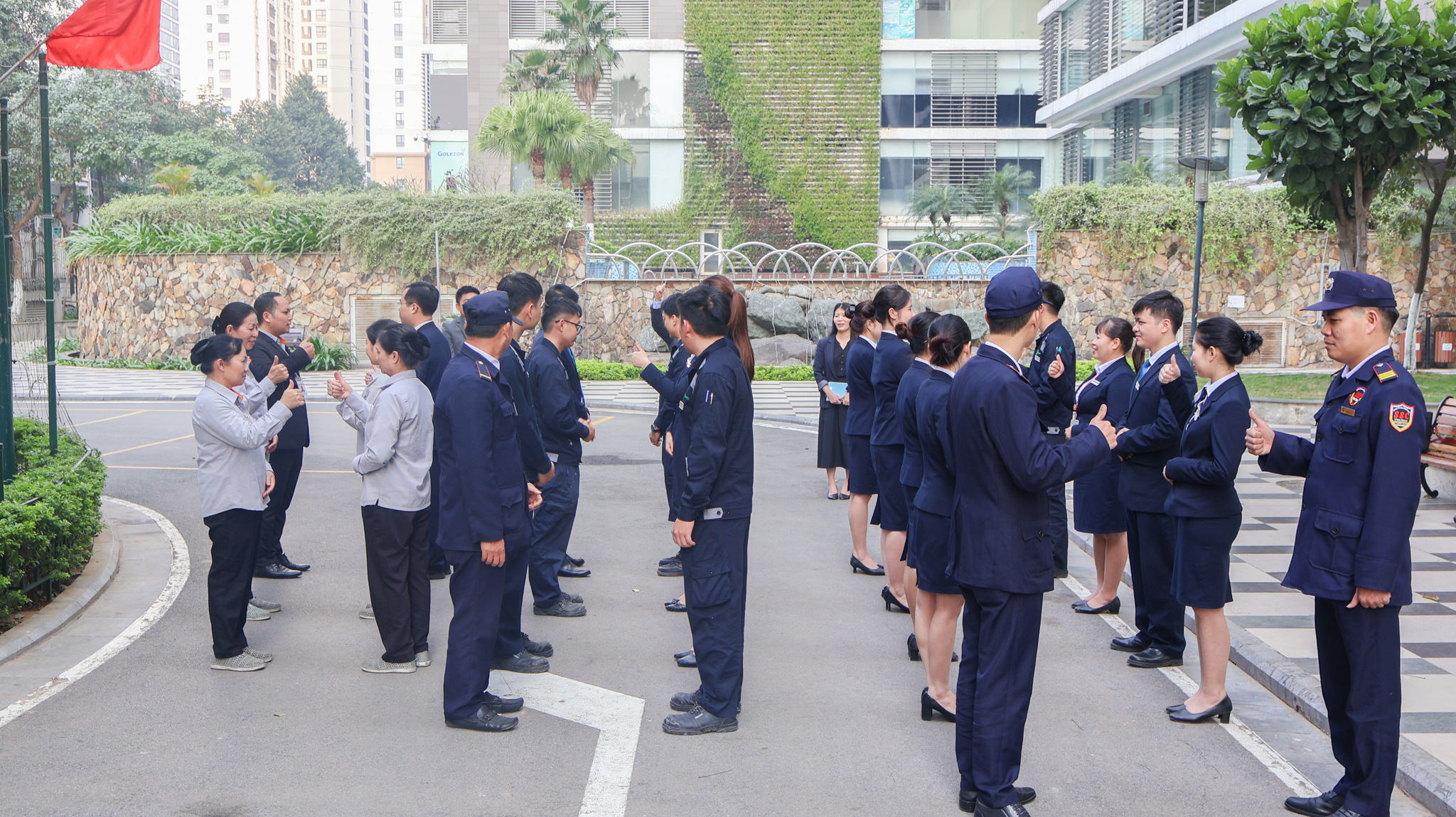 プロジェクト現場でのちょうれいセッションを通して、VISAHOのリーダーたちはプロジェクト管理委員会や警備・清掃スタッフと直接面談し、フィードバックを聞きながら、「おもてなし」の理念(心からの献身的なサービス精神)を伝え、業務の細部に至るまで改善を目指します。