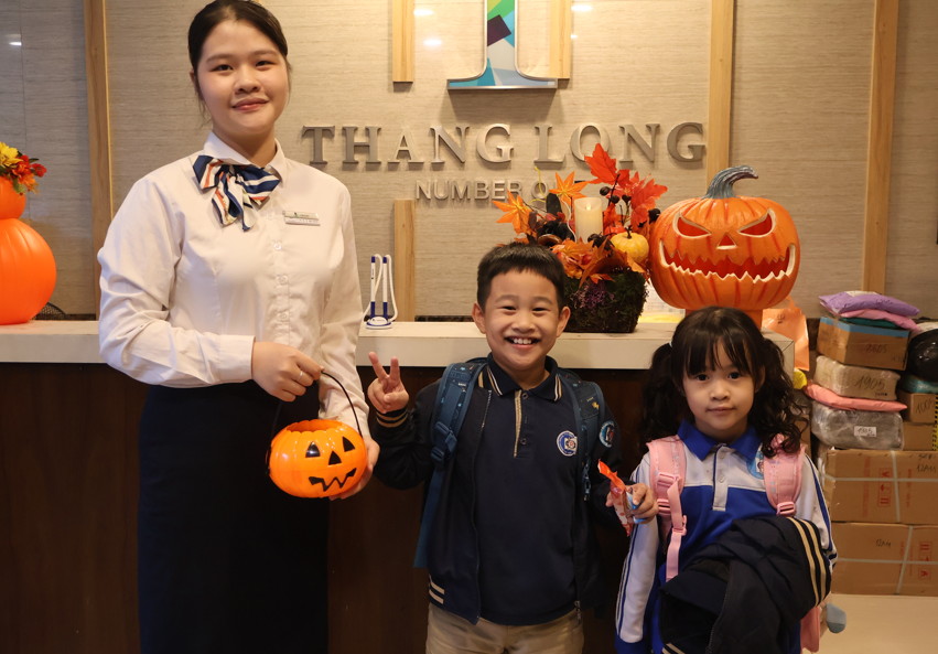 Not only stopping at the decoration, October 29 to 31, VISAHO also organized a Halloween candy giving activity for all residents at the building's reception hall. The sweet candies will be handed out by the reception team with a friendly smile. For VISAHO, it is not just a small gift, but also a wish for a festive season full of joy and laughter.