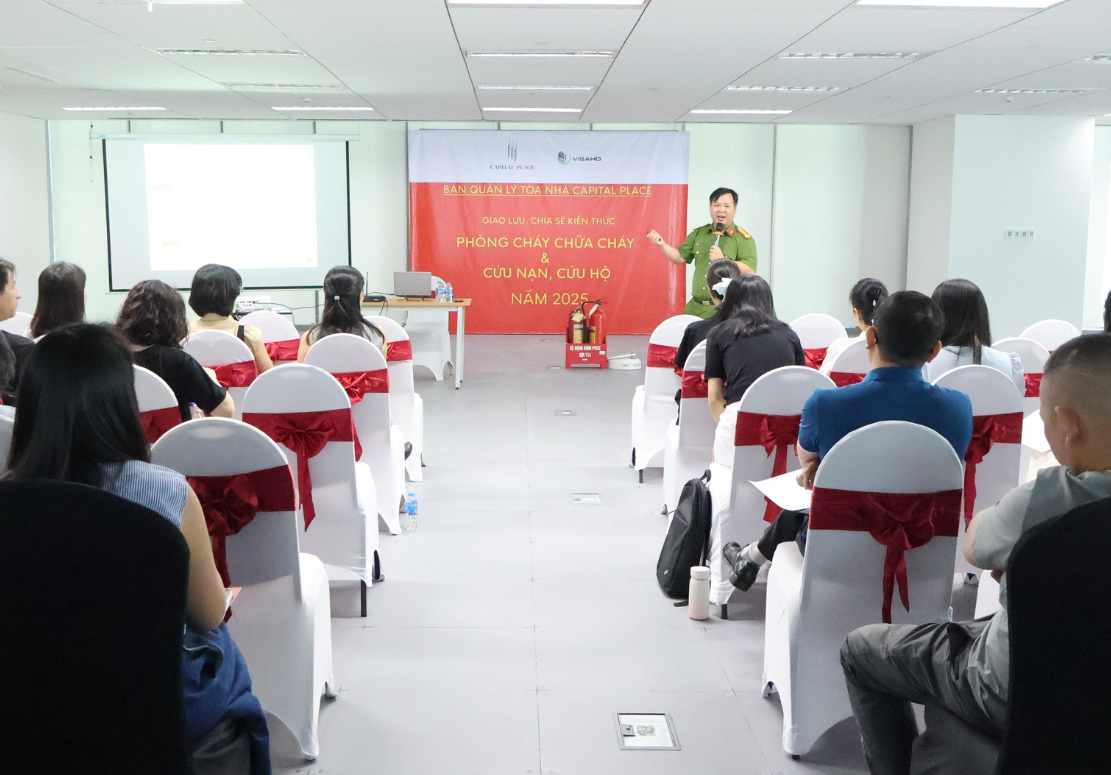 去る10月17日、キャピタルプレイスを管理するVISAHO運営管理機関は、ハノイ市消防警察・救助隊と協力し、お客様やテナントの緊急時の対応スキル向上を目的とした防火・消火・救助に関する啓発セミナーと訓練を実施しました。